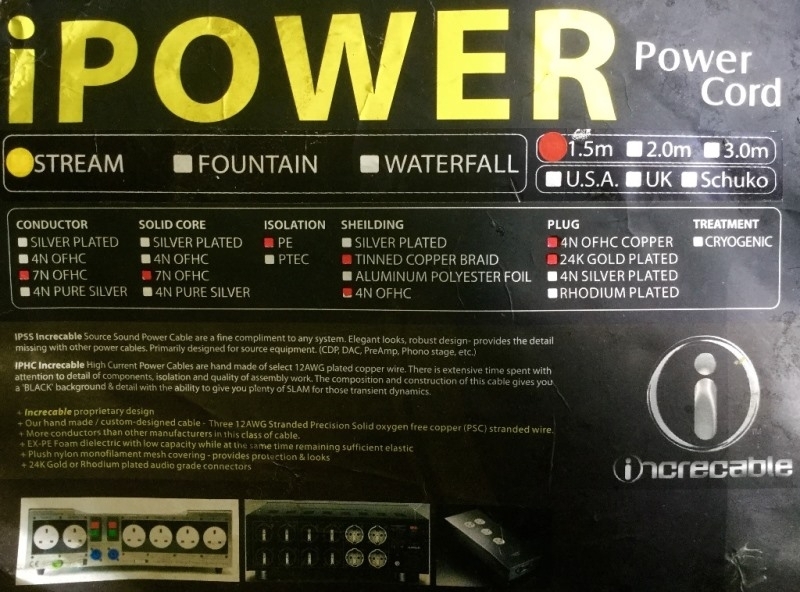 สายไฟ AC ระดับไฮ-เอนด์จาก Increcable รุ่น i-Power STREAM DCT 6N OFHC ปลั๊กหัว-ท้าย ใช้ Increcable i-Plus 4N OFCH มาพร้อมแพคเกจ