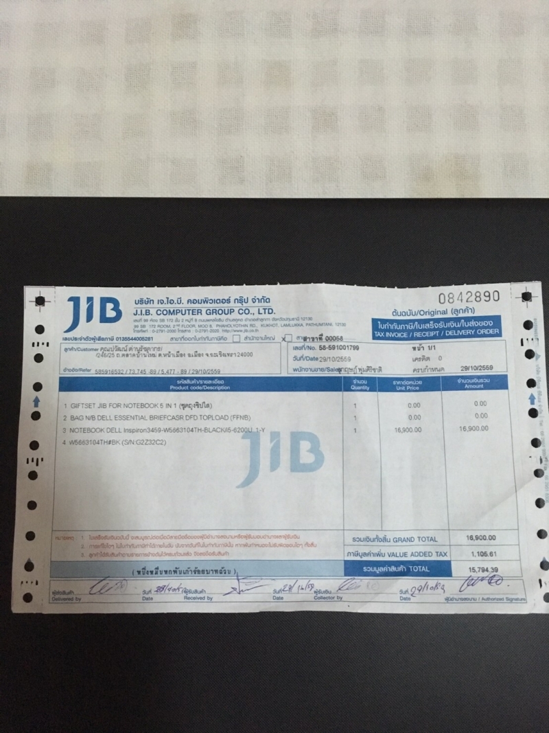เอกสาร 1.ใบรับประกัน JIB 2.กระเป๋าdell แท้ตรงรุ่น