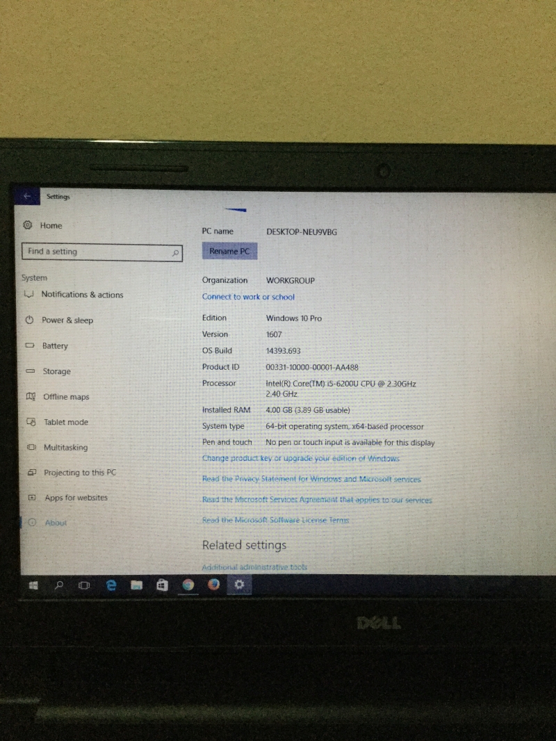 ขาย notebook dell 14" window 10 intel core i 5-6200u cpu 2.30ghz 2.40ghz