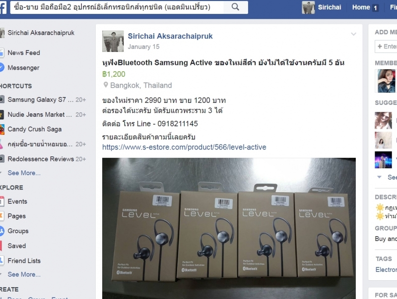 "ขายหูฟัง Samsung Level Active ของใหม่ยังไม่เคยใช้ อันละ 1200"