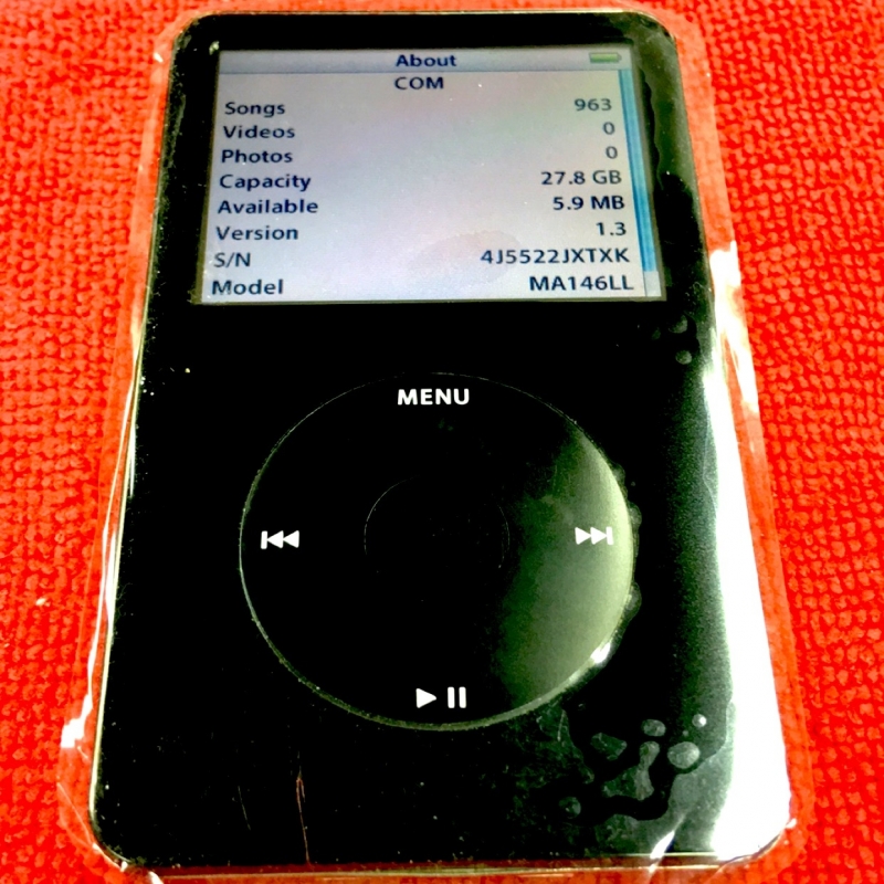 iPod Video 5th Generation 30 GB Black พร้อม สายชาร์จใหม่เอี่ยม พร้อมเคสยาง พร้อมกระเป๋าใส่ iPod ราคา 3850 บาท สภาพสวยงาม