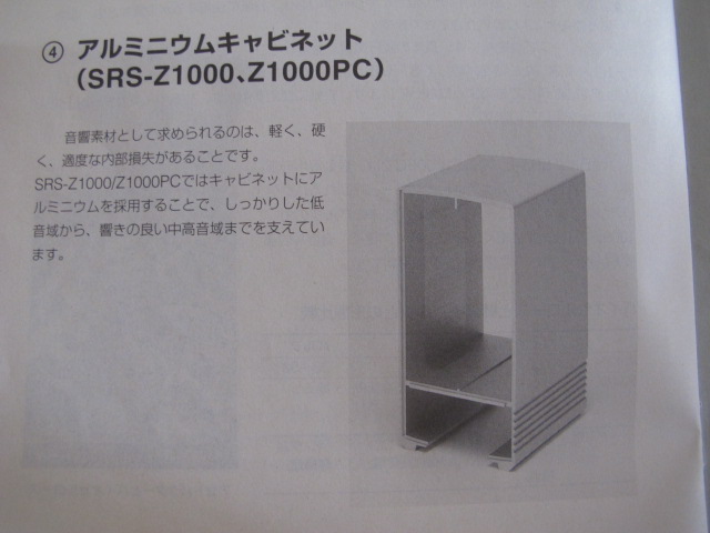 1.ลำโพง Sony SRS-Z1000 ซึ่งตอนที่ผมได้มา ได้มา 2 ชุด เป็นของ Old Stock เป็นลำโพงตัว Top สุดของ Sony ในยุคนั้น สามารถใช้ได้กับเครื่องเล่น CD และ MD และ Player ทุกรุ่นที่มี Line In เป็นของญี่ปุ่นแท้ๆ โครงสร้าง BODY เป็นอลูมิเนียม ดอกลำโพงเป็น Voice แม่เหล็กสองชั้น ดอก full rangeขนาด2.5นิ้ว และการออกแบบ Port ลมของลำโพงทำได้ดีเลยทีเดียว น้ำเสียงมีครบทุกย่านความถี่ เสียงไม่แพ้ลำโพงสมัยใหม่ที่ราคาหลักหมื่นแน่นอนครับ อุปกรณ์ที่มีในกล่อง ประกอบไปด้วย