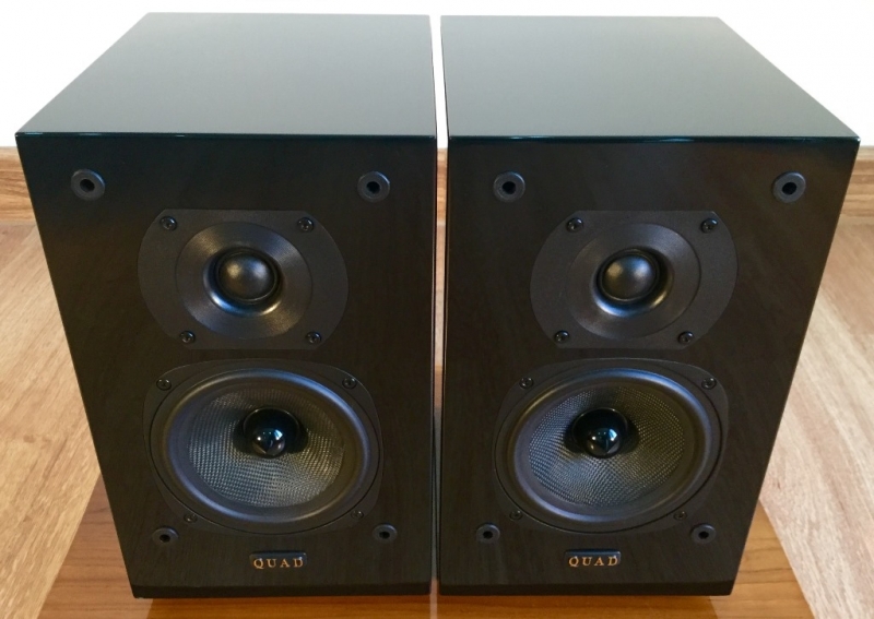 Quad 11L ลำโพงวางหิ้งแบรนด์ระดับคุณภาพจากอังกฤษ วูฟเฟอร์ขนาด 5 นิ้ว มีช่องระบายลมด้านหลัง ขั้วต่อแบบไบร์-ไวร์ ตู้ดำเปียโนสวยหรูมากๆ