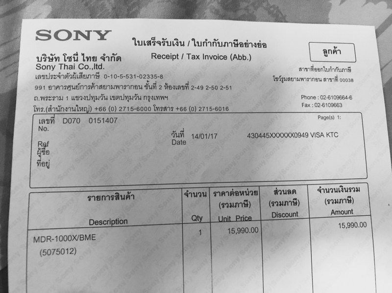 SONY MDR-1000X ซื้อวันที่ 14 มกราคม ปีนี้ ประกันยังเหลือ ระบบตัดเสียงรบกวนยอดเยี่ยมมาก เสียงร้องดี กังวาล อุ่น เบสมีมวลเป็นลูกใหญ่แต่หยุดตัวดี รายละเอียดหาตำแหน่งได้ชัดเจน เสียงแหลมและรายละเอียดฟังสบายไม่จัดไม่บาดหูและไม่ทับเสียงร้อง โดยรวมฟังสบายอบอุ่นฟังได้เรื่อยๆ ได้ประโยชน์จากระบบตัดเสียง อุปกรณ์และการซื้อเอกสารครบ