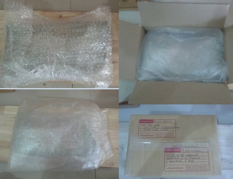 ใส่กันกระแทคแล้ว ห่อด้วยถุงพลาสติกอีกชั้น กันน้ำไว้