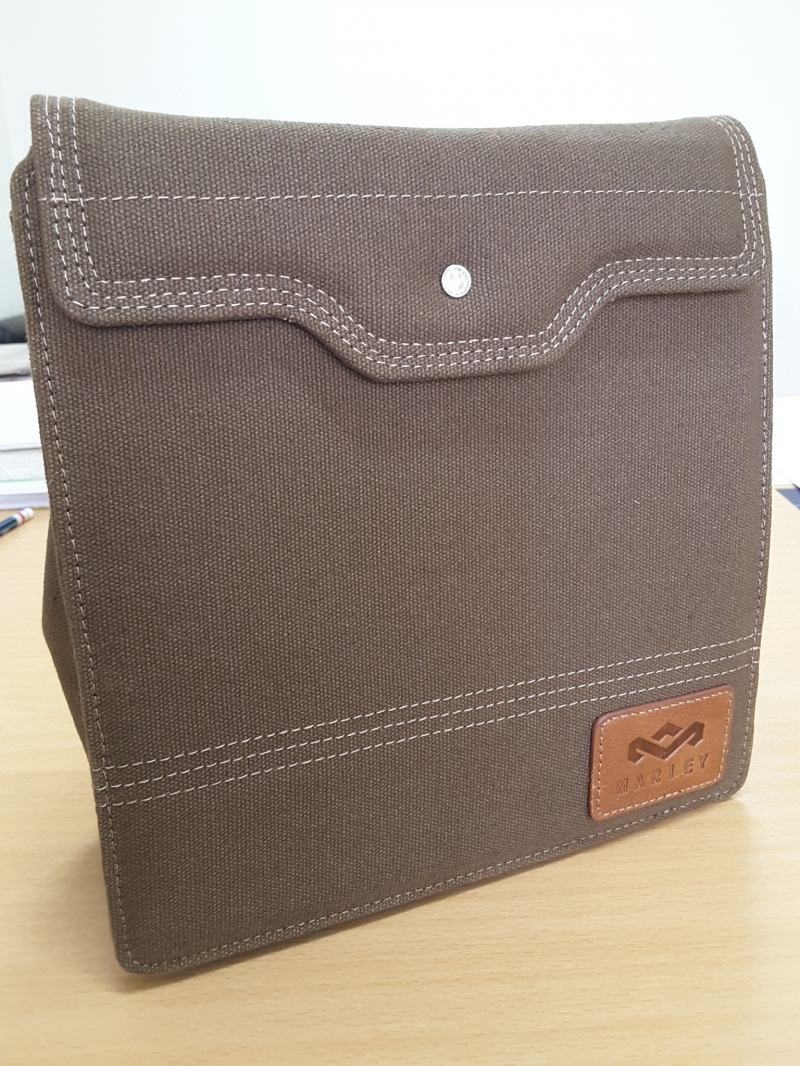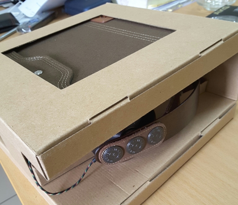 ในกล่องมีถุงใส่หูฟังทำจากหนังอย่างเทห์ สวย ครับ