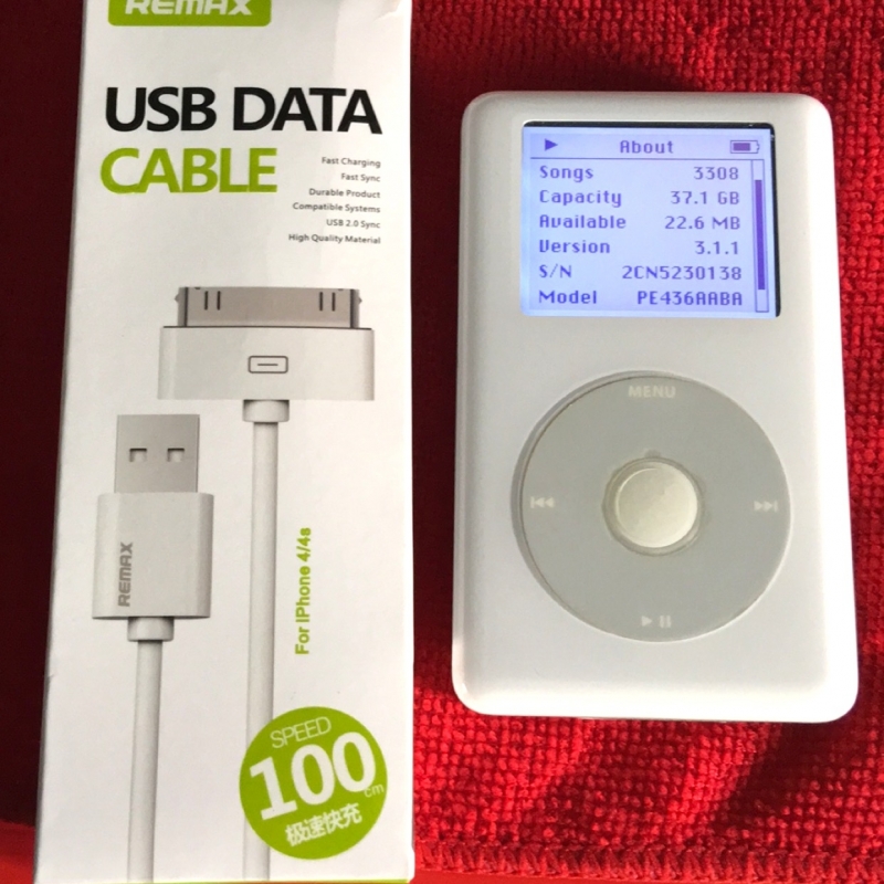 Vintage Apple iPod Classic 4th B&W "HP edition "Generation White 40 GB + สายชาร์จใหม่เอี่ยม 1 กล่อง ราคา 3650 บาท