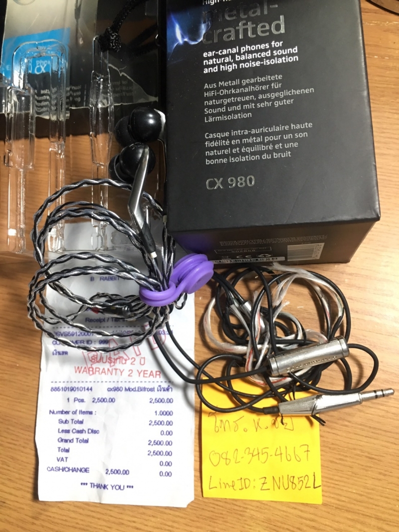 ซื้อมา 1 ปี กว่าๆ ประกันหมดแล้ว กล่องและอุปกรณ์ครบ (ตามรูป ถ่ายจากของจริงครับ) ซื้อจาก Generation-S ราคาของใหม่ขายกันอยู่ประมาณไม่ต่ำกว่า 9,000 บาท. แต่ขอส่งต่อที่ 5,500 บาทครับ มีสายเก่าไปให้สายยังไม่ขาด แค่ฉนวนแตก เอาไปหุ้มหูฟังอื่นได้