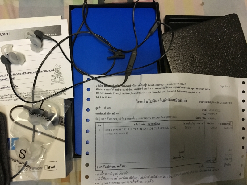 - หูฟัง Bose soundtrue ultra (ios) เหลือประกันอีก 4 เดือน อุปกรณ์ครบกล่อง ขาย 4500 บาท