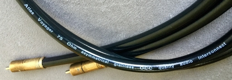 Atlas รุ่น Voyager สายสัญญาณแบบ RCA ยาว 1 เมตร หัว-ท้าย เดิมจากโรงงาน เป็นสายจากประเทศอังกฤษ เสียงดีคุณภาพเหนือราคาแนวเสียงสดใสชัดเจน สะอาดโปร่งพริ้ว เน้นรายละเอียดในย่านเสียงแหลม ให้ความสงัดกังวาล และการทอดตัวอันยาวไกลของปลายแหลมเสียงร้องสดชัดพุ่ง ให้รายละเอียดได้ดี เสียงเล็กเสียงน้อยที่ออกมาจากตัวนักร้องทำได้โดดเด่น ไดนามิคดี มีความเป็น Audiophile สูงพอตัวหัวเบสกลมมน ค่อนข้างอืดอาด ช่วงฐานล่างแผ่ลงพื้นได้ดี มีเนื้อหนังอวบขยายได้ใหญ่โตมากมาย เหมาะที่สุดกับระบบที่เสียงทื่อทู่อุดอู้ดแหลมกุด Atlas Voyager ช่วยเปิดปายแหลม เพิ่มความกระจ่างกังวาลสดใส และลากปลายให้ยาวขึ้นด้วยในขณะเดียวกัน ก็ช่วยให้ระบบที่เบสแห้งลีบ ท้ายสั้นเก็บไวเกินไป ให้มีเนื้อหนังอวบอิ่ม มีความละมุน และให้ตัวเป็นรูปเป็นร่างมากขึ้นด้วย