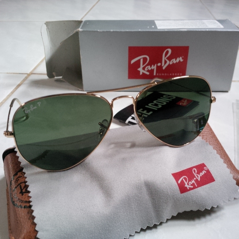 ขาย แว่นกันแดด RayBan Aviator RB3025 Polarized Lens มือสอง ของ RayBan แท้ สภาพใหม่ เก็บสะสม รายละเอียดตามรูป ขนาด lens สูง 58 m.m กว้าง 62 m.m สภาพสวยตามรูป