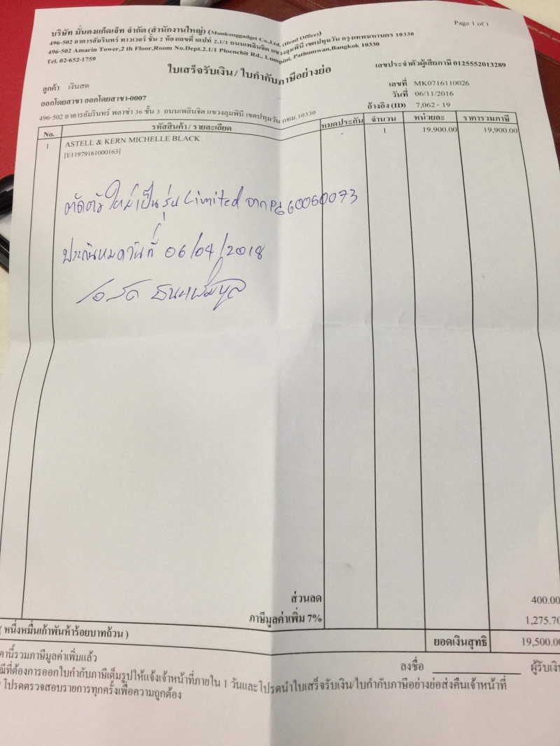 ตัวนี้ได้มาจากการเคลม michelle ตัวเดิมครับได้ตัว limited มาแทน ประกันถึง 4 เมษายน 61