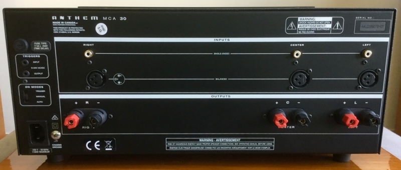 Anthem รุ่น MCA 30 เป็น Power Amp. 3 Channel กำลังข้างละ 225 วัตต์ ที่ 8 โอมห์ Anthem จาก USA แบรนด์นี้แอมป์ดูหนังไฮ-เอนด์ เสียงดีระดับโลก