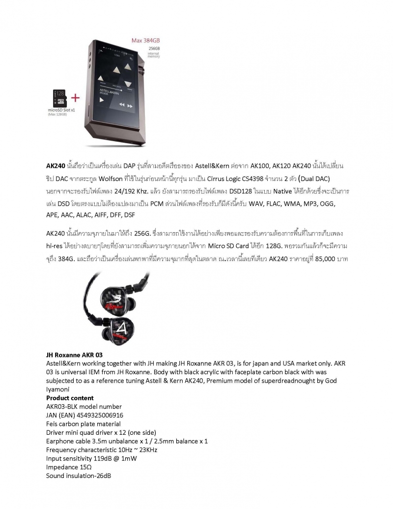 ขออนุญาติปล่อย AK240 (อดีตประกันร้านเฮีย) และ JH Roxanne รุ่น AKR03 (รุ่นขายเฉพาะที่ญี่ปุ่นและอเมริกา)