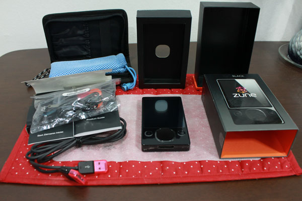 1. ZUNE 120 GB. สีดำของครบกล่องเดิมๆ ติดกันรอยรอบตัว รอบรูเสียบแจ๊ค อาจดูไม่เรียบร้อยแต่เนื้อในไม่มีริ้วรอยแน่นอน