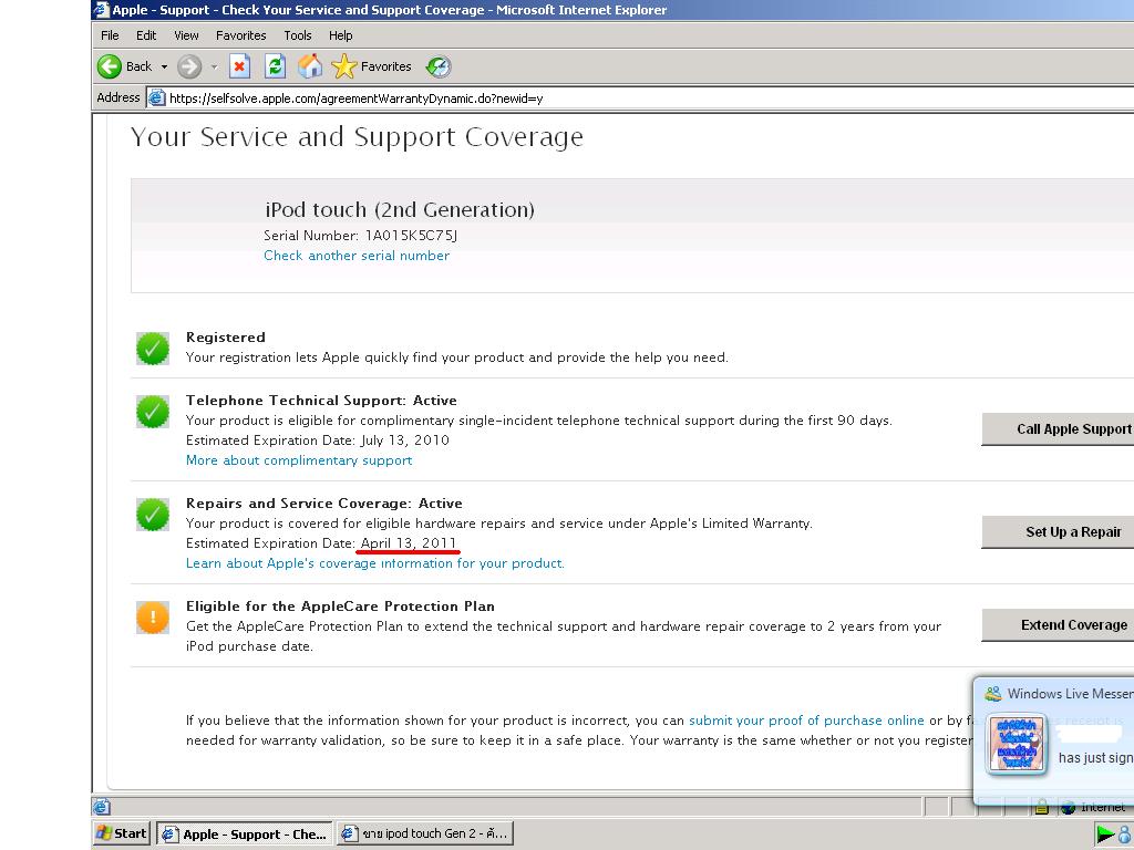 ขาย iPod Touch Gen 2 8gb เครื่องใหม่ยังไม่เคยใช้งาน ประกันยาวถึง เมษายน 2011 ครับ
