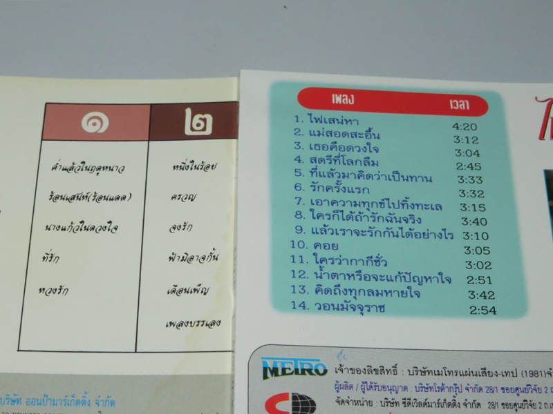 - รวมเพลงอมตะ ชุดที่ 2 มี 18 เพลง แผ่นสวย / P+O /