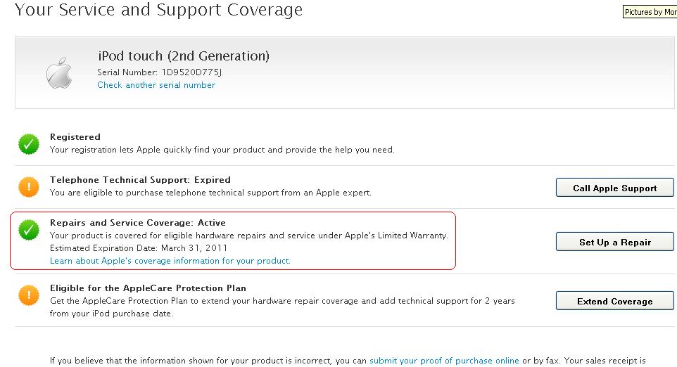 ประกัน : ประกันแอปเปิ้ลเหลือประมาณ8เดือนจ้า(ถึง 31 มีนาคม 2554 ตามรูปจ้า)