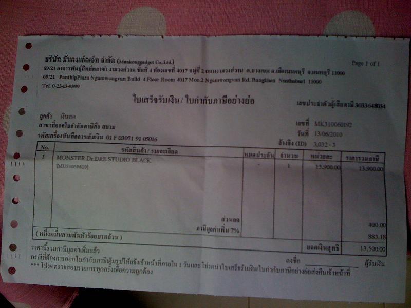 หลักฐานการยืนยันว่าเป็นของแท้ : มีใบเสร็จร้านเฮีย (รหัสสินค้าในใบเสร็จ กับที่แปะบนกล่องMonster ตรงกัน อันนี้เวลามีปัญญาสามารถนำไปให้ที่ร้านเฮียดูได้ครับ), มี serial ภายใต้ฝาปิดที่ครอบถ่าน และ อีกอย่างสามารถลองเรื่อง Noise Cancel คือถ้าเปิดสวิตที่หูฟังจะไม่ได้ยินตัดเสียงจากภายนอกเข้ามาภายในครับ ถ้าปิดก็จะได้ยินเสียงข้างนอกชัดเจนกว่าเดิม พูดง่ายๆคือแตกต่างกันแบบเห็นได้ชัด ส่วนของ copy อันนี้ไม่เคยลองว่าทำได้แบบนี้หรือไม่ครับ