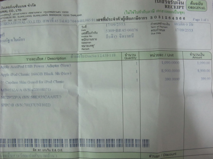 1.IPOD CLASSIC 160GB สภาพ 99% อุปกรณ์ครบ(บางอย่างไม่ได้ใช้เลย)+ ซิลิโคนอย่างดี พร้อมติดกันรอยเรียบร้อยแล้ว เหลืออีก 1 ชุด(มาพร้อมซิลิโคน)ซื้อมาเมื่อวันที่ 17/09/2010 ทีเดอะมอลล์ บางกะปิ ตามใบเสร็จรับเงิน ขอขายที่ราคา 7,900 บาท