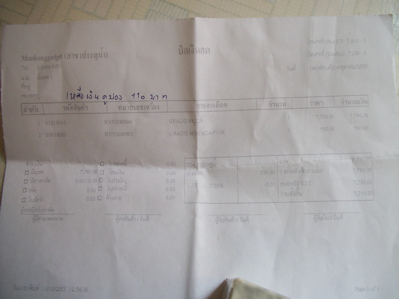 Grado sr 225i ซื้อที่ร้านเฮีย 4 ตุลาคม 2553