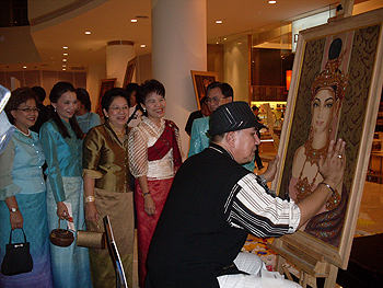 ด้านซ้ายเป็น กินรี ส่วนด้านขวาเป็น พระเพื่อน-พระเเพง