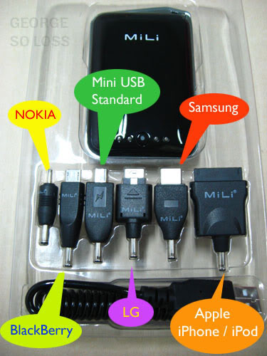 Mili Power Miracle - MiLi Power Miracle อุปกรณ์จัดเก็บพลังงานสำรอง หรือ แบตเตอรี่สำรอง ความจุมากถึง 2000mAh, 3.7V /7.4Wh พร้อมหัว Adapter ขนาดต่างๆให้ใช้งานมากถึง 6 ชุด ซึ่งอุปกรณ์เสริมสำหรับ ที่ชาร์จแบตเตอรี่ ให้กับอุปกรณ์ต่างๆ หากต้องเดินทางหรือทำงานนอกสถานที่บ่อยครั้ง ต้องไม่ควรพลาด ใช้ได้กับหลายอุปกรณ์ อาทิ iPhone, iPod, Blacberry, Nokia, Sumsung, LG, PSP, Nintendo, Palm/PDA และ PMP