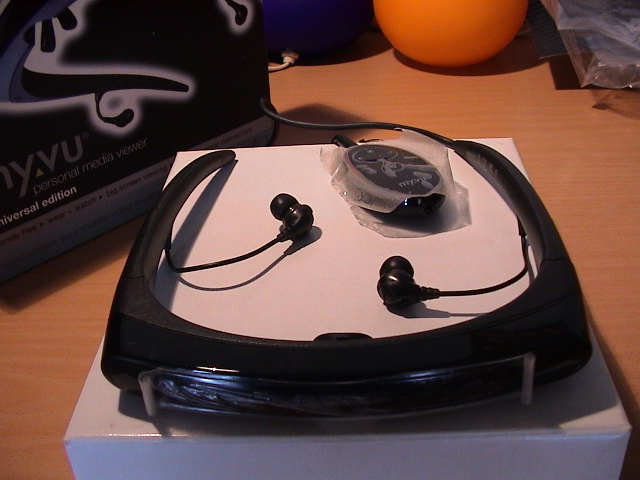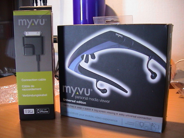 แว่นตาดูหนัง myvu personal media viewer ใหม่ ๆ ใช้ไม่กี่ครั้งจริงจริงครับของ USA นะครับ ไม่ใช่จีน เหมือนดูจอ 42 นิ้วในระยะ 10 ฟุต รับสัญญาณ AV(RCA) สามารถต่อกับไอโฟนไอฝอด ตัวสายผมซื้อต่างหากพันกว่าบาทแถมให้เลยครับ ใช้แบตรรี่ในตัว เลยครับรุ่นนี้ไม่เหมือนยี่ห้ออื่นใส่ถ่าน ปรับภาพให้เข้ากับสายตาได้ ไม่ต้องใส่แว่นสายตาเวลาดู รวมค่าส่ง ไม่มีvatครับ