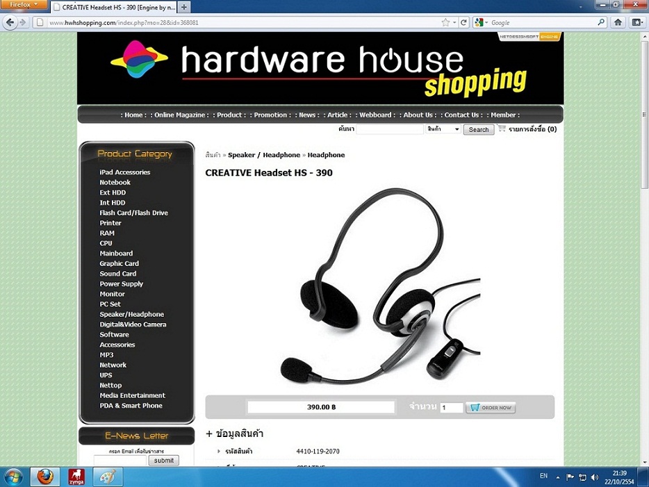 ขาย Head Phone ยี่ห้อ CREATIVE รุ่น Headset HS - 390