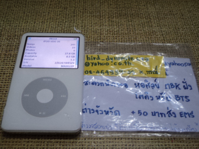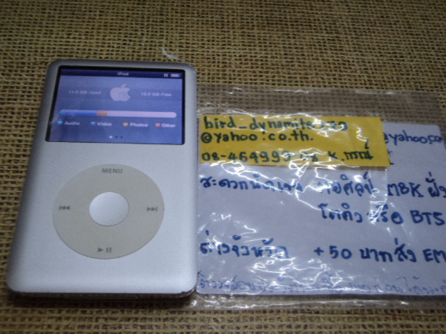 Ipod Classic สีเงิน 30GB เนื่องจากเดิมฮาร์ดดิสก์เดี้pงครับ เลยเปลี่ยน HDD ใช้จุ 30กิ๊ก