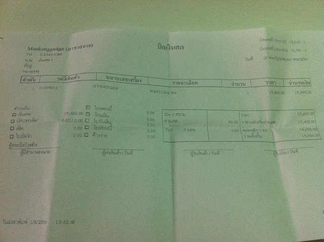 1.ซื้อเมื่อ 29/05/54 มีใบเสร็จร้านมั่นคง