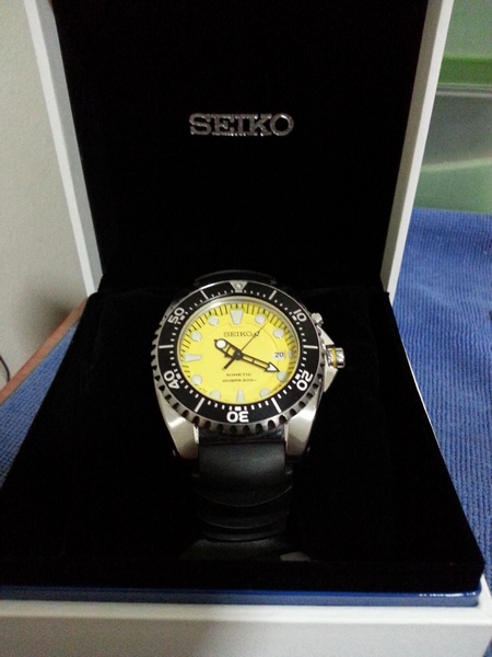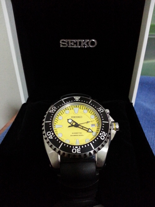 ขายนาฬิกา SEIKO Kinetic Diver's 200 M หน้าเหลือง สภาพสวยมีรอยขนแมวจากการใช้งานนิดหน่อยครับ มีกล่องน๊ะครับ ใบรับประกันหายหาไม่เจอครับ แต่สันนิษฐานว่าหมดประกันแล้วแหล่ะ ซื้อมาประมาณปีหน่อยๆเห็นจะได้ครับ