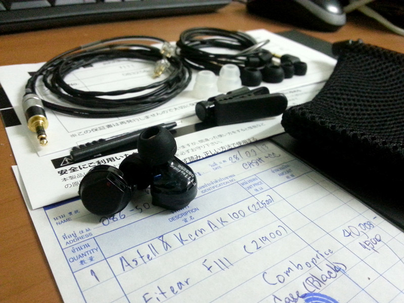 - หูฟัง Fitear F111 + Stock Cable 003 (รุ่นใหม่ ตัวปัจจุบัน) ผมซื้อมาพร้อมกับ AK100 จากร้าน JET ใบเสร็จลงวันที่ 28/03/2013 (ประมาณ 2 อาทิตย์) อุปกรณ์ครบ สำหรับ Fitear F111 จะไม่มีกล่องมาตั้งแต่ต้นนะครับ เพื่อนๆใครเคยซื้อน่าจะทราบครับ อุปกรณ์ที่มาในเซ็ตอยู่ครบทุกชิ้น ถุงพลาสติค ถุงผ้าสีดำ กระดาษเอกสารภาษาญี่ปุ่น 2 ฉบับ แปรงทำความสะอาด ตัวคลิบหนีบเสื้อ จุกยางสีดำ 3 คู่ (ใส่อยุ่กับตัวหูฟัง 1 คู่) จุกยางสีขาวแบบสองชั้น 1 คู่ สายเดิมที่มาพร้อมหูฟัง Fitear Cable 003
