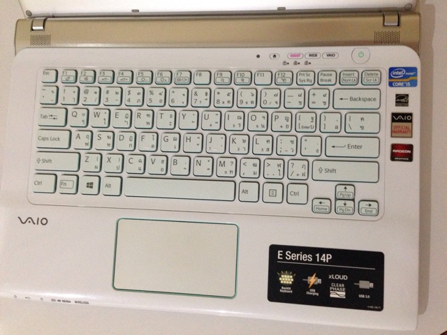 อุปกรณ์ : SONY VAIO SVE14A25CHW สภาพสวยใหม่ เพิ่มแรมเต็มสูบ 16GB ติดกันรอยแบบด้าน ติดกันรอยด้านบนเครื่อง พร้อมเม้าส์ และซิลิโคนคีบอร์ดเข้าชุดกันครับ