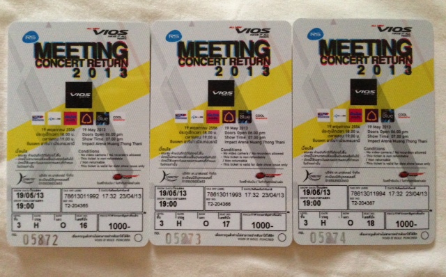 กระผมติดธุระขออนุญาติขายบัตร Concert RS Meeting Concert Return 2013รอบสุดท้าย19พ.ค.นี้ 3ใบติดกันตำแหน่งดี หน้าบัตร1000 ขอขายใบละ900 จำนวน3ใบ ติดต่อ 084-973-0716 ต้นค้าบ ขอไม่โอนไม่จัดส่งใดๆนัดเจอตัวเท่านั้นจะได้สบายใจทั้งสองฝ่าย ตาม BTS MRT เซ็นทรัลบางนา ขอบคุณค้าบผม