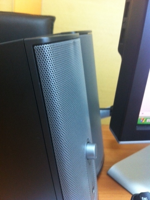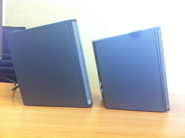 ตำหนิ มีรอยบุบตรงหน้าตะแกรงลำโพงตัวขวาดังรูป แต่ไม่มีผลต่อเสียง