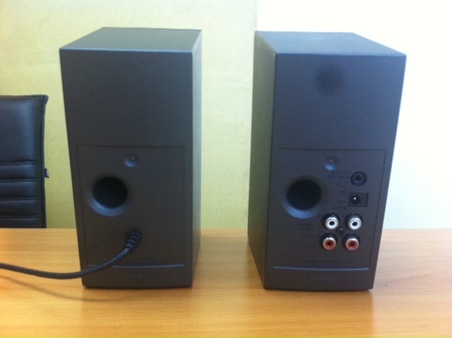 อุปกรณ์เดิมๆ มี ลำโพงซ้าย-ขวา, AC Adaptor, สาย audio in, สายเชื่อมลำโพงซ้ายขวา