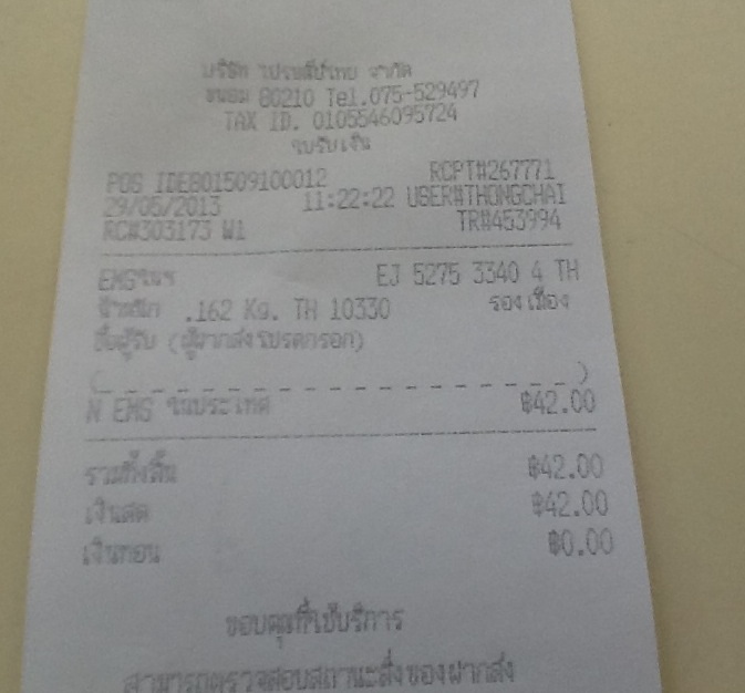 ส่งของแล้ว จะมาแจ้งรหัส พัสคุให้ครับ