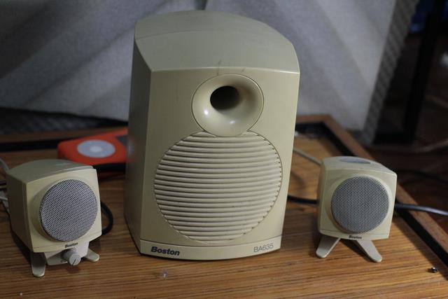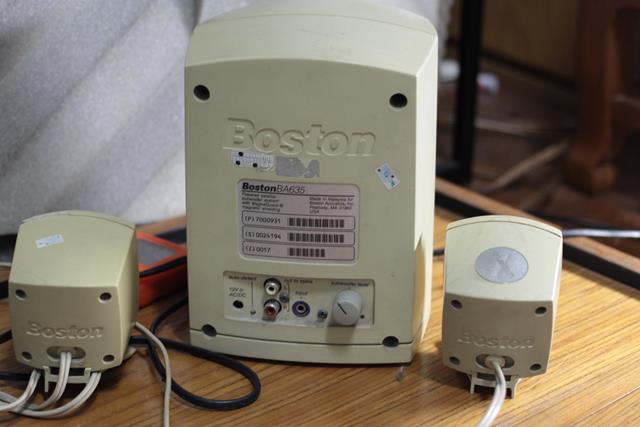 2. ลำโพงคอมเก่าๆ ของผมเอง บอสตัน มีตำหนิที่ลำโพงข้างหนึ่งแตกตามรูป ใช้งานปกติดี วอลลุ่มสกปรกหน่อยครับ ตัวนี้ของผมเองใช้มานานมากๆ เก่าเก็บ