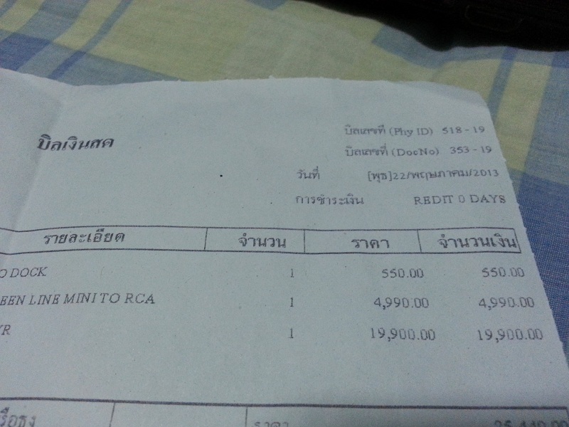 อุปกรณ์มี ตัวแอมป์ สาย ac กล่อง หลอด 2 อัน และใบเสร็จร้านมั่นคง