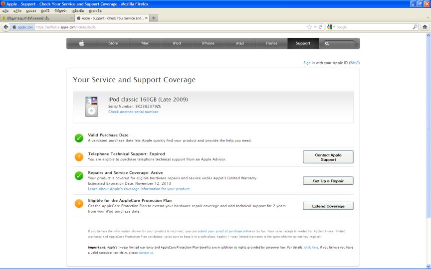 Ipod Classic 160g ครบกล่องมีประกัน ถึง 11/13