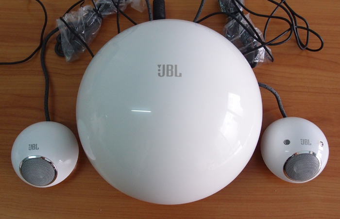 ตัวแรก JBL Spot 2.1 ดีไซน์สวยผิววัสดุเงาวาววับ มีหน้ากากสีดำแถมให้ เผื่ออยากเปลี่ยนลุคครับ