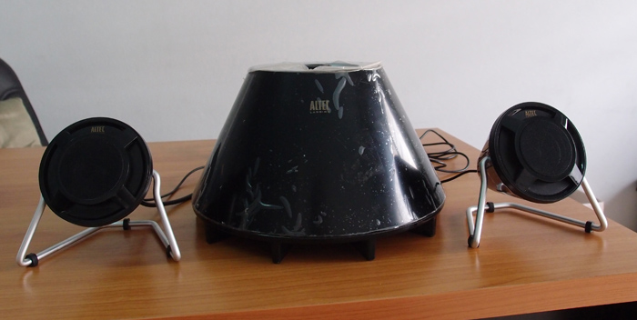 กำลังขับรวม 36 Watts Rms ให้เสียงกลางที่น่าฟัง เบสกำลังดี ไม่เยอะมาก ปุ่มปรับ Volume อยู่ที่ตัวลำโพงแซทเทลไลน์ ด้านซ้าย เป็นแบบสัมผัส แค่วางนิ้วไว้ก็เพิ่มลดเสียงได้แล้วครับ (บริเวณปุ่มเหลืองนิดหน่อย นอกนั้นใหม่เกือบ 100% กล่องก็ดูสภาพใหม่มากครับ)