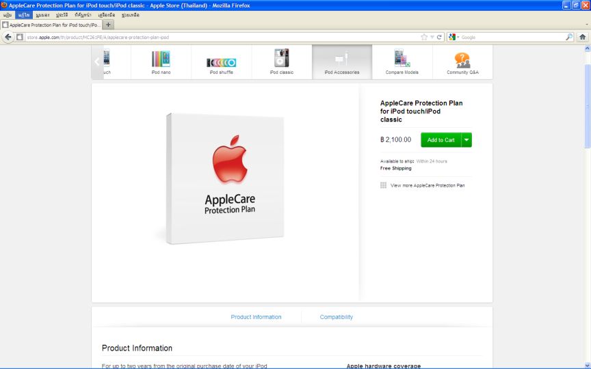 "ขาย AppleCare ใช่ต่อประกัน iPod touch/iPod classic"