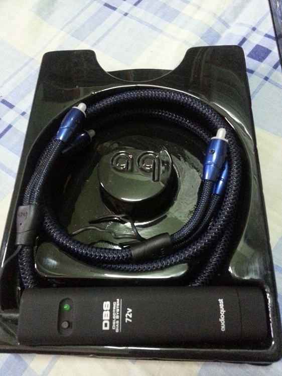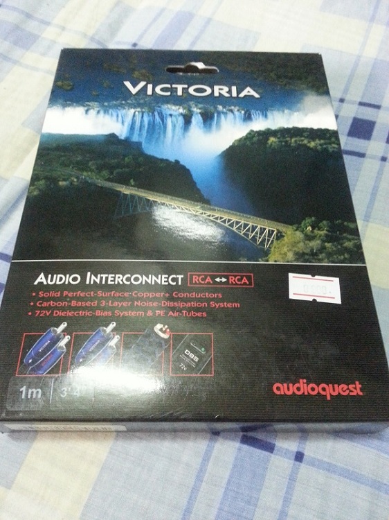 2. สาย RCA Audioquest Victoria ยาว 1 เมตร ซื้อมาจากร้านปิยะนัส เมื่อวันที่ 28-06-56 สภาพใหม่ๆ ไม่ได้ใช้แล้วเนื่องจากพึ่งปล่อยแอมป์ไป แล้วว่าจะไปเล่นพวก DAC-AMP แทน แนวเสียงอิ่มแน่นฟังสบายรายละเอียดดีไม่บาดหูตามแนวสายทองแดง รุ่นนี้มีระบบ DBS มาให้ด้วยเสียงดีขึ้นไปอีกระดับ