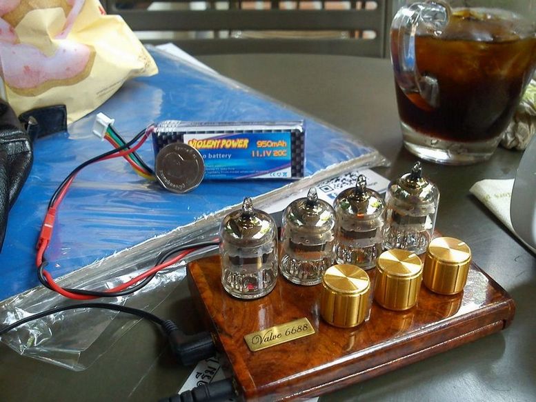 หลอดจิ๋ว Valve6688 มีเฉพาะแท่นไม้มะค่าวงจรครับ กับ อแดปเตอร์ 12 v