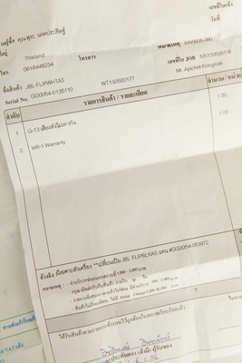 หมายเหตุ ลำโพงตัวนี้ ตอนซื้อเป็นสีขาวนะครับ แต่ว่าพอแกะกล่องแล้ว รู้สึกว่าเสียงมันดังซ้ายขวาไม่เท่ากัน เลยเอาเข้าศูนย์ ศูนย์ก็จะเปลี่ยนตัวใหม่ให้ แต่ว่าพอดีตอนนั้นสีขาวไม่มี เลยถามว่าผมจะเอาสีดำไหม มีของเลย ผมก็ไม่ซีเรียสครับ เปลี่ยนเป็นสีดำ โดยทางศูนย์หมายเหตุไว้ในใบรับสินค้า ระบุ Serial ของตัวที่เปลี่ยนไว้เรียบร้อย สิทธิ์ประกันยังอยู่ครบสมบูรณ์ครับ