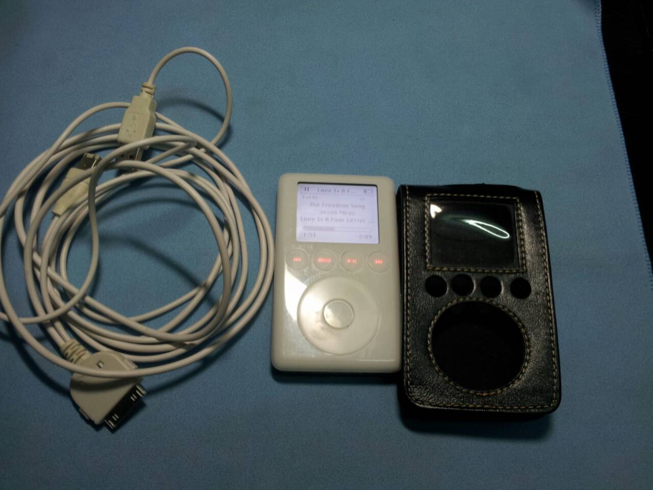 รายการที่ 4 : IPOD gen3 20gb พร้อมซองหนัง และสาย sync แบบสาย y (เทียม) ตัวนี้ Hdd น่าจะมีแบดนะครับ เพราะผมฟังแล้วมันข้ามเพลงไปเลย แต่เป็นแค่จุดเดียวครับ ฟังอัลบั้มอื่นไม่มีปัญหาอะไร Ipod ตัวนี้ผมซื้อมาจากพี่อ้วน