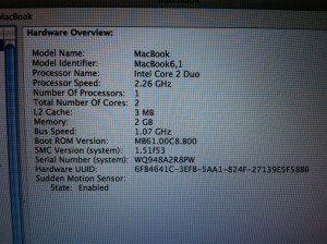 - CPU : 2.26 Ghz. Intel Core 2 Duo Processor