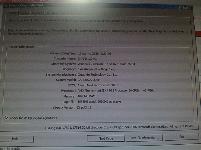 Processor : AMD Phenom(tm) II X 4 965 Processor (4 CPUs) , 3.4GHz